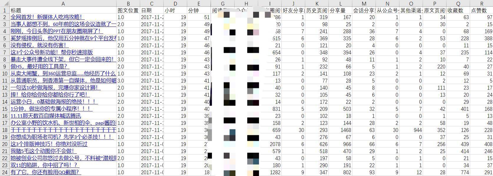 所以,我们为你做了“一键导出excel数据表格”的功能。不仅有阅读数、分享数等常规数据,还为你算好了打开率、分享率:)