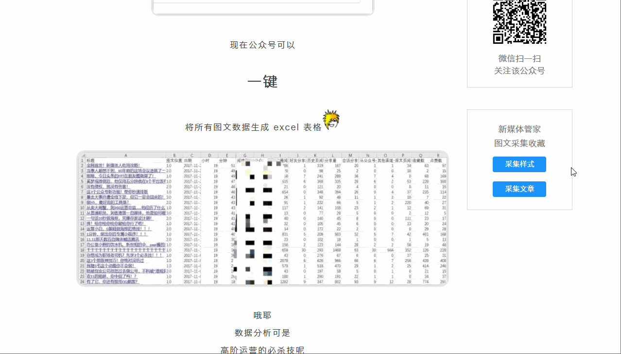 你再也不用一个个登录、编辑、发布,而能将文章一键发布到所有平台。 ⑤数据分析省时间 第五件事,是分析图文数据。 统计图文数据,估计是新媒体人最头痛的事了……你是手动打字,将几千个数字放入excel表格吗?