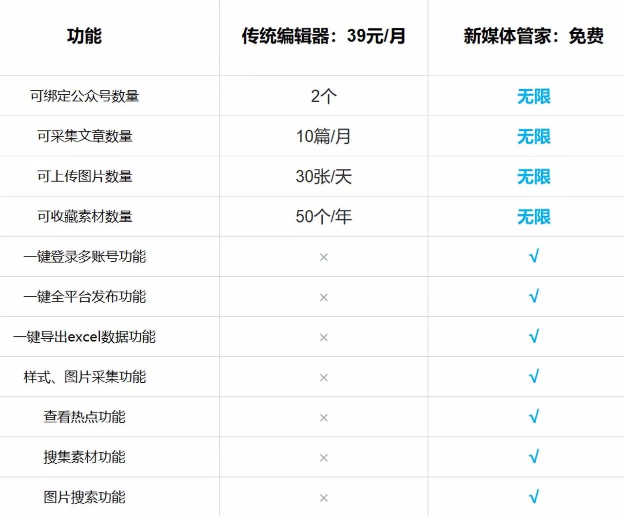 接下来,我将为你解答,这款免费、好用的浏览器插件工具,是如何帮你提高工作效率的? 1 传统编辑器VS新媒体管家 公众号运营者,用新媒体管家最大的好处,就3个字:省时间!